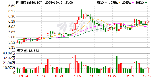 二级市场上,截至12月19日收盘,四川成渝上涨0.81%报6.21元/股,总市值约189.91亿元,今年来公司股价累计上涨约24%。